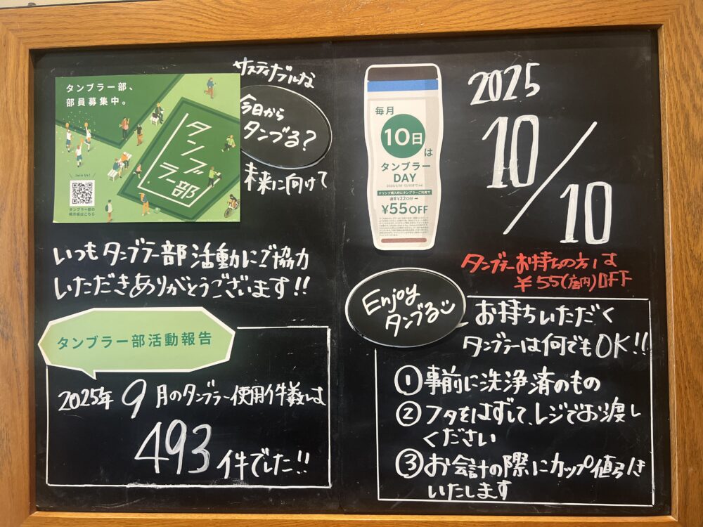 ハロウィン新作発売日の10/10に行ったのですが、毎月10日は「タンブラーDAY」だそうで、タンブラーを持って行くと55円OFFになるそうです!