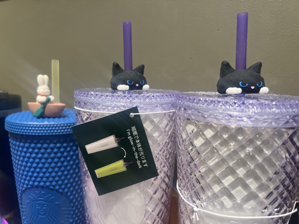 中央のペーパーカップフィギュアが暗闇でやさしく光る仕様で、そのカップからは黒猫が飛び出しています。