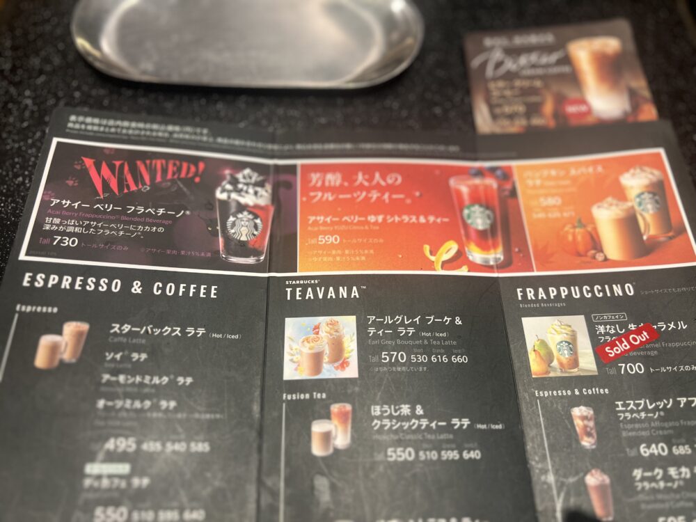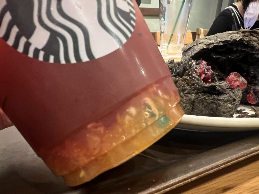 昨日、阪急南千里店で「アサイーベリーフラペチーノ(通称:黒猫フラペチーノ)」を飲んだので、今回は「アサイーベリーゆずシトラス&ティー」にしてみます!