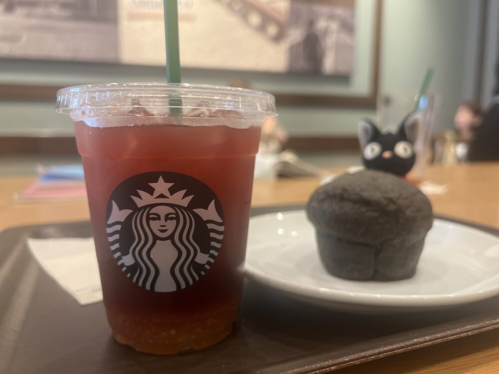 昨日はスターバックスコーヒー 阪急南千里店で、「アサイーベリーフラペチーノ(通称:黒猫フラペチーノ)」をレポしました。