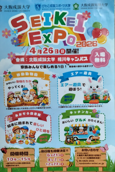 吹田のおとなり、大阪市東淀川区ににある大阪成蹊大学で楽しいイベントがあるようです。