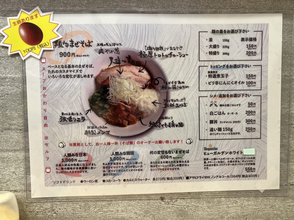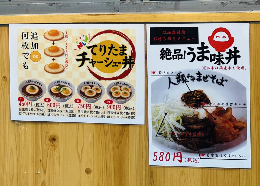 今回は2名で訪れたので、定番の「人類みなまぜそば」に加えて、【江坂店限定】どんぶり2種も注文し、シェアして食べてみようと思います!