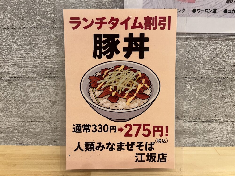 ランチタイム割引で、ミニ豚丼が通常330円(税込)のところ275円(税込)になるそうです!