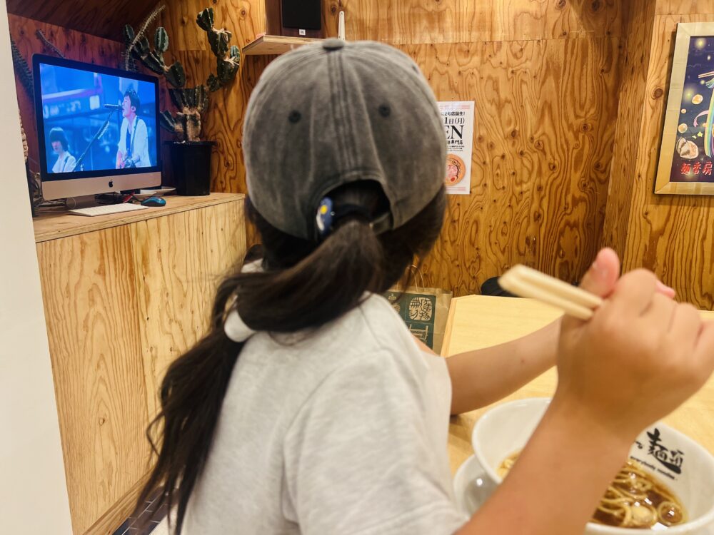 娘がラーメンの手を止めて見つめていた、視線の先はMacのモニター。