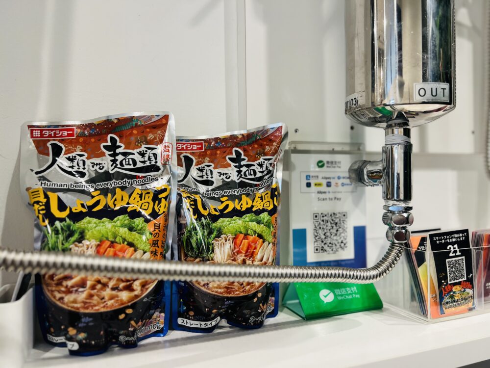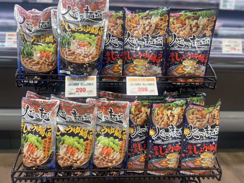 レジ横にあった、「人類みな麺類」監修の鍋つゆ。