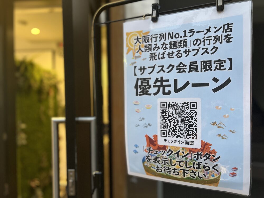 なんと!並ばずとも優先的に「人類みな麺類」にチェックインができるサブスクもあるようです。