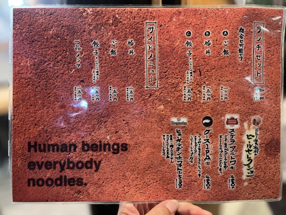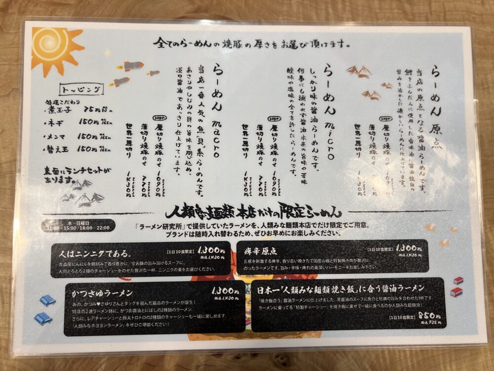 と、その下のサインボードに目が行き確認すると、そこには「人類みな麺類ラーメン研究所」と書かれているではありませんか!