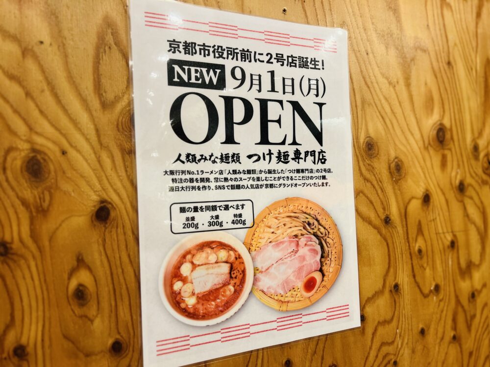 「人類みな麺類 つけ麺専門店」の2号店が、9月1日に京都市役所前にオープンしたそうですが、1号店は「人類みな麺類 西中島本店」の目と鼻の先、西中島南方駅からすぐの場所にあるようです。