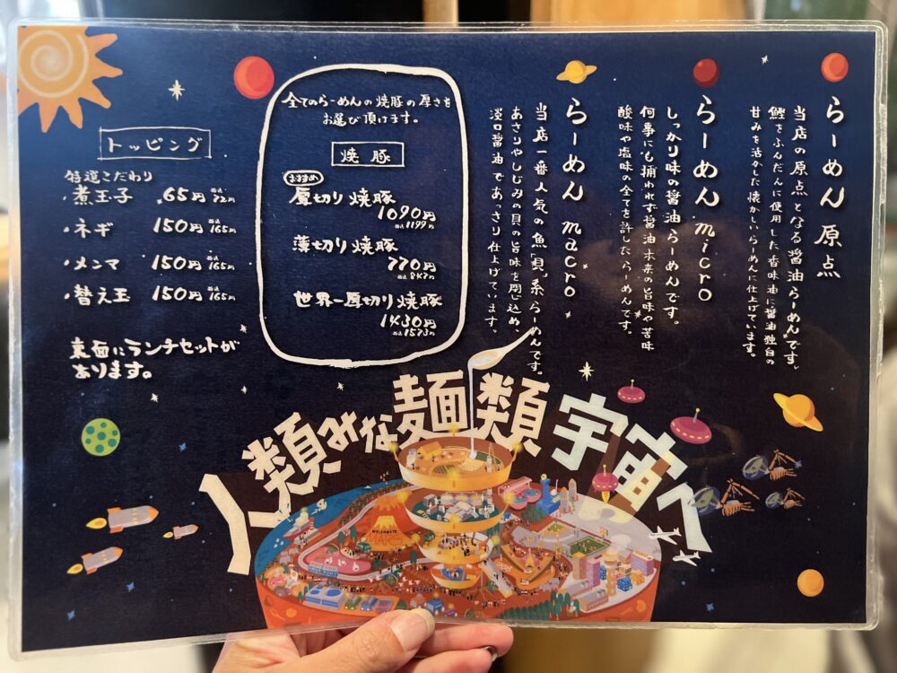 「らーめん原点」、「らーめんmicro」、「らーめんmacro」の3種類のラーメンは、焼豚の厚さで価格が変わり、それぞれ下記の通りとなるようです。