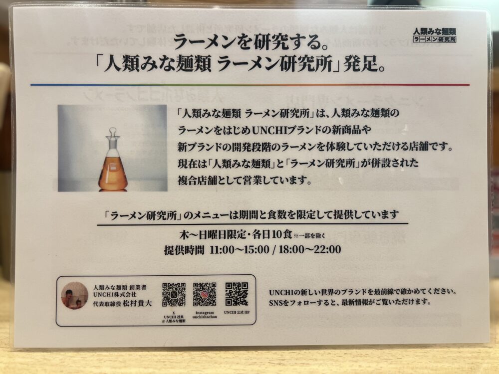 さて、冒頭でお伝えした「人類みな麺類ラーメン研究所」ですが、こちらは今年6月に「人類みな麺類」の入口付近に新設されたようです。