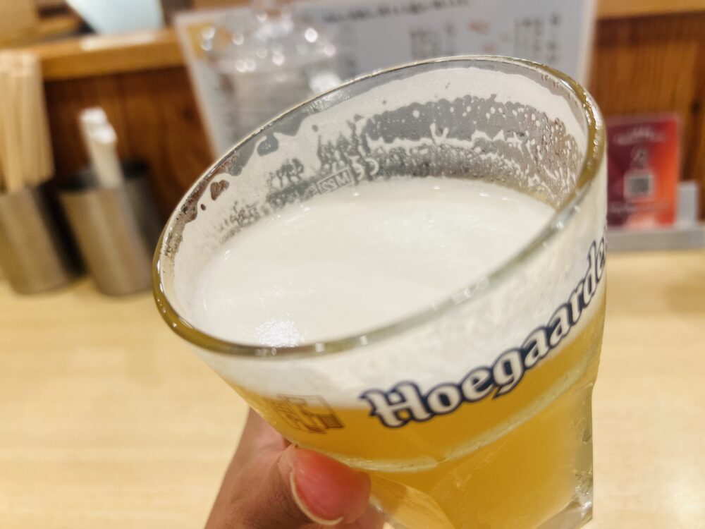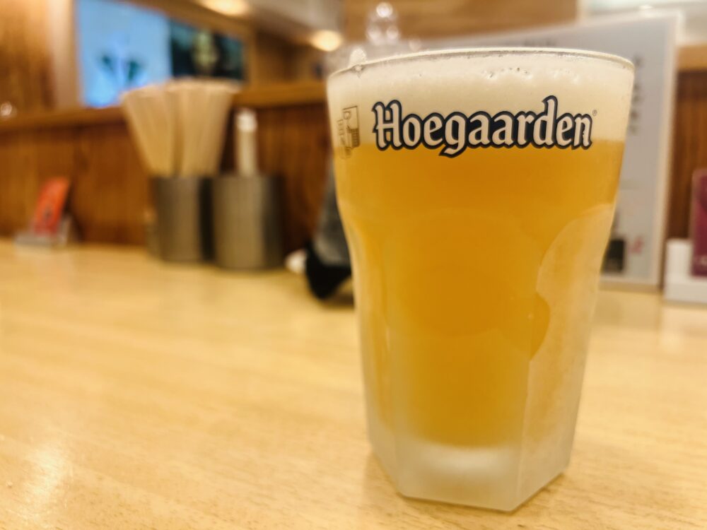 さらに、松村社長のビールセレクションから、世界一に輝くベルギービール「ヒューガルデンホワイト(生)」583円(税込)を注文。