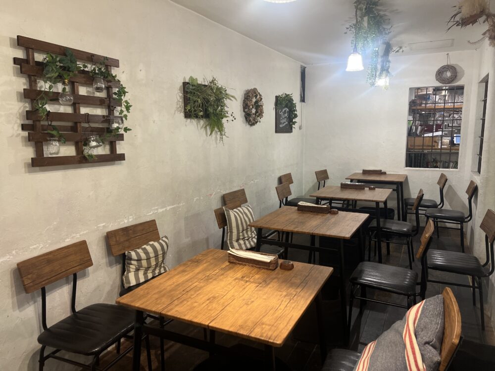 グリーンを基調とした温かみのある店内は、ベビーカーでも入れそうな広々とした開放的な空間でした。