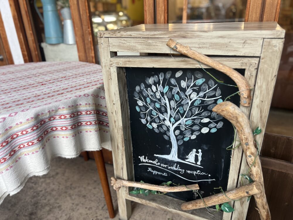お店の前にはウェディングボードがありましたが、こちらのお店は結婚式の二次会でもよく利用されているそうです。