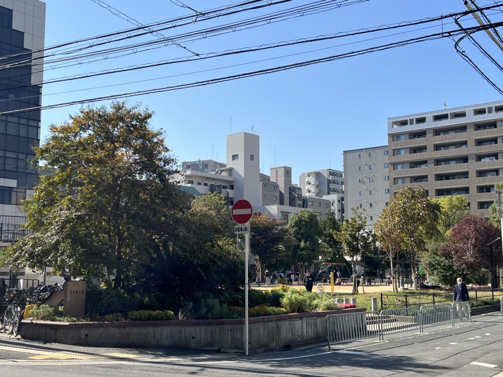 「江坂ビストロ リアン」から江の木公園を左手にして、まっすぐ進んでいくと……