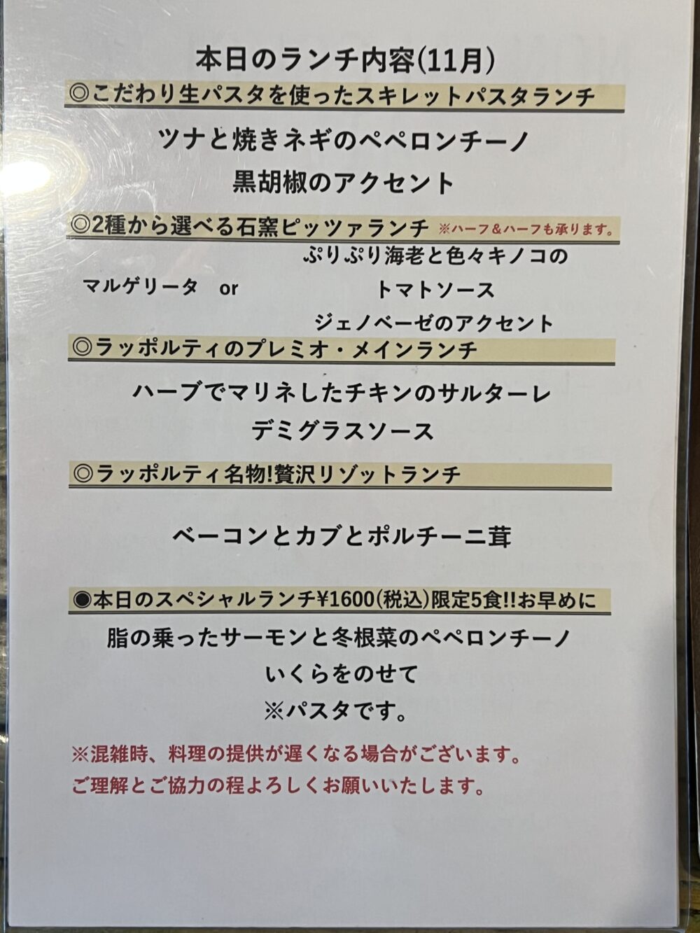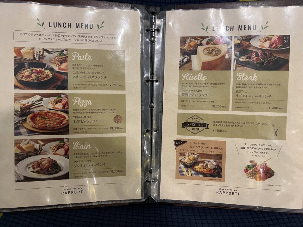 今回は「2種から選べる石窯ピッツァランチ(税込1,500円)」と、「ラッポルティ名物!リゾットランチ(税込1,700円)」をチョイス。