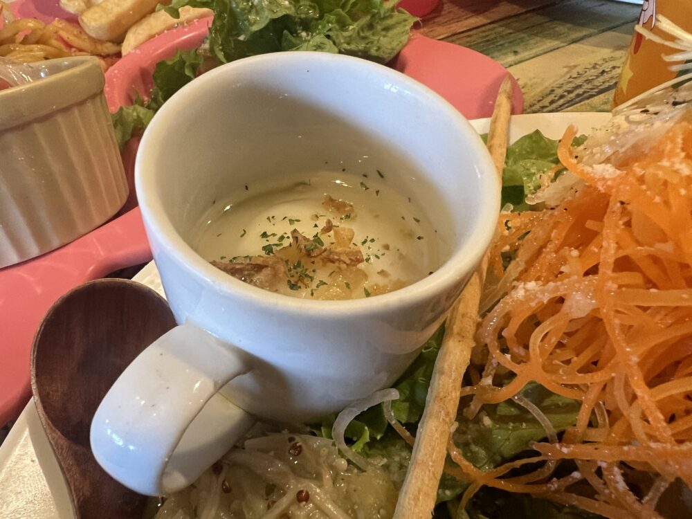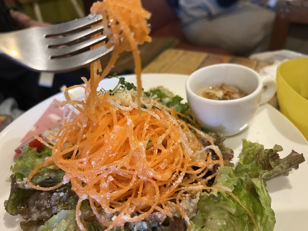キャロットラペにかかっているドレッシングは甘めで、食欲をそそりました。