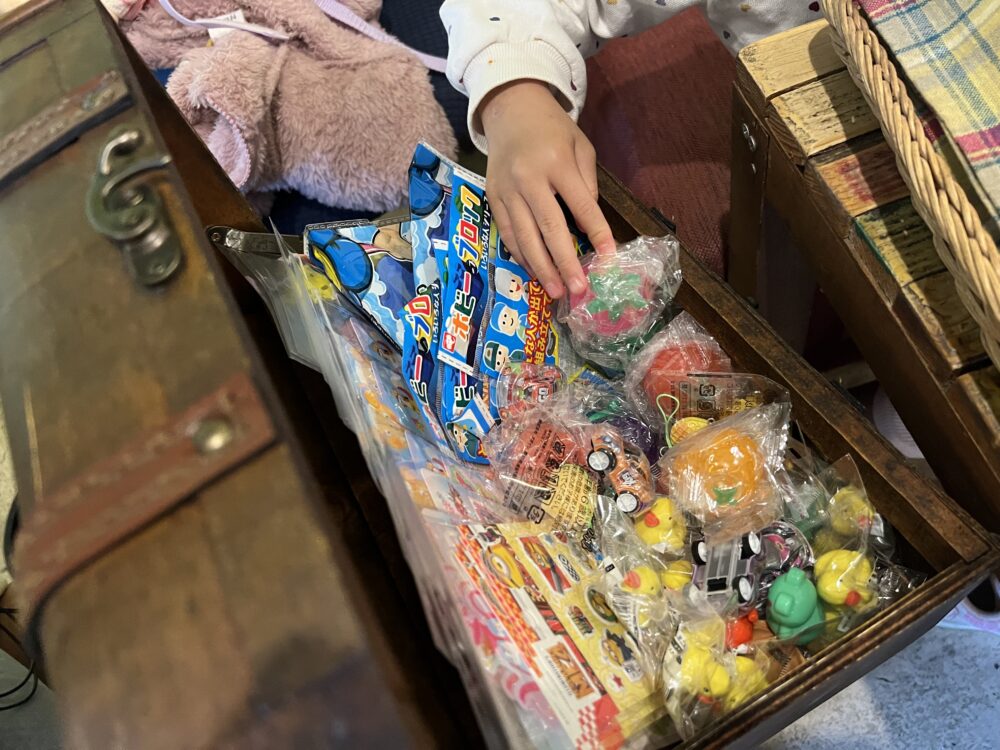 「お子さまランチ」を注文したキッズには、宝箱から好きなおもちゃをもらえました☆