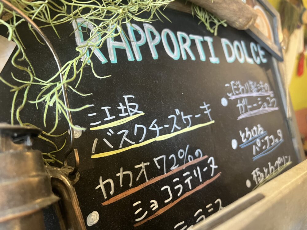 レジ横には「RAPPORTI DOLCE(ラッポルティドルチェ)」と書かれたボードが。
