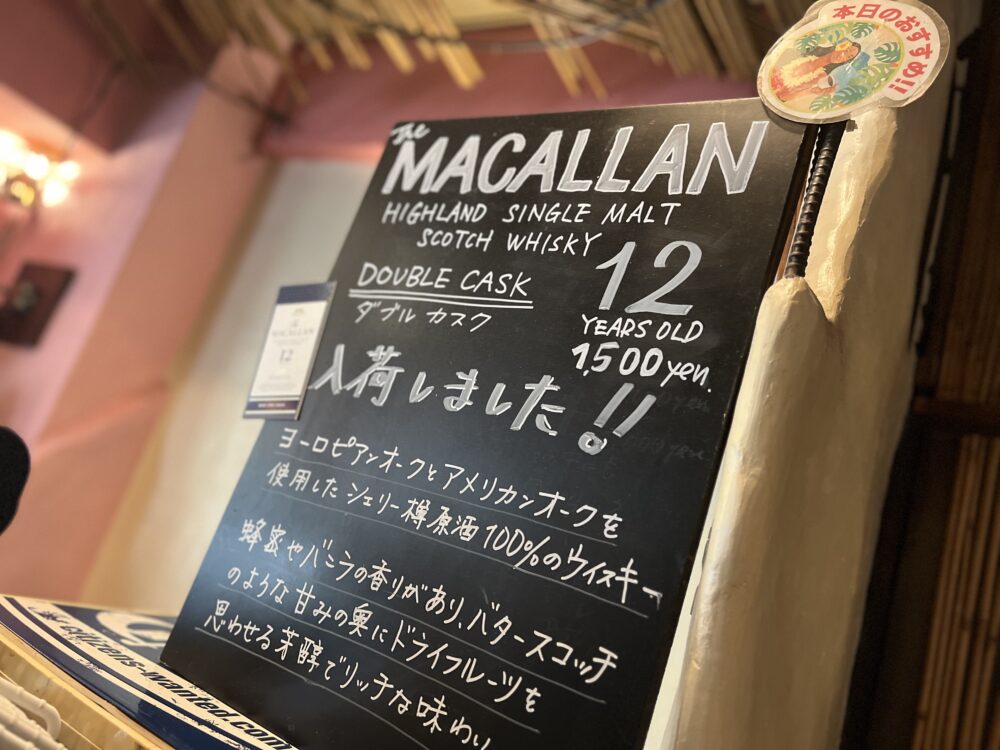 さらに、「MACALLAN」の12年ものウイスキーも入荷しているのだとか。