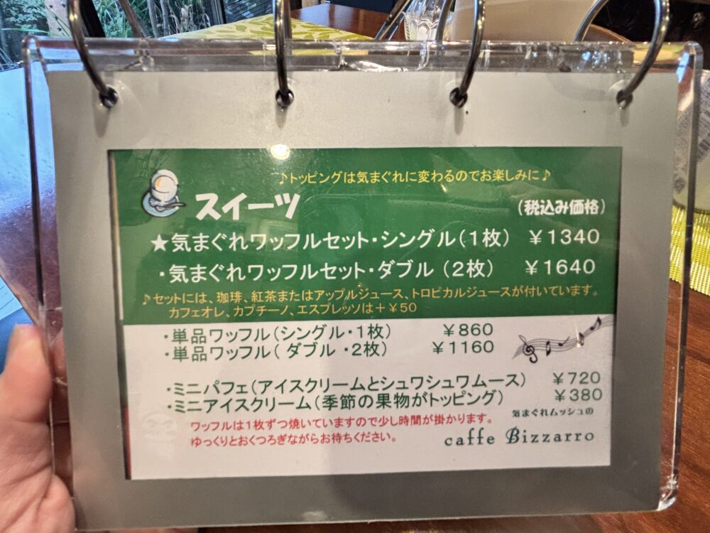 • 気まぐれワッフルセット ドリンク付き 1340円(税込)