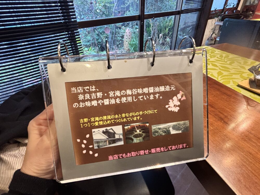 テーブルに置かれたメニューには、お店のこだわりも書かれていました。