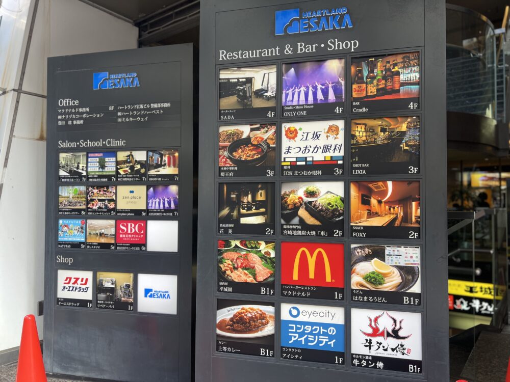 今回はここ。江坂のおいしいランチを求めて、「ハートランド江坂ビル」に行ってみました!