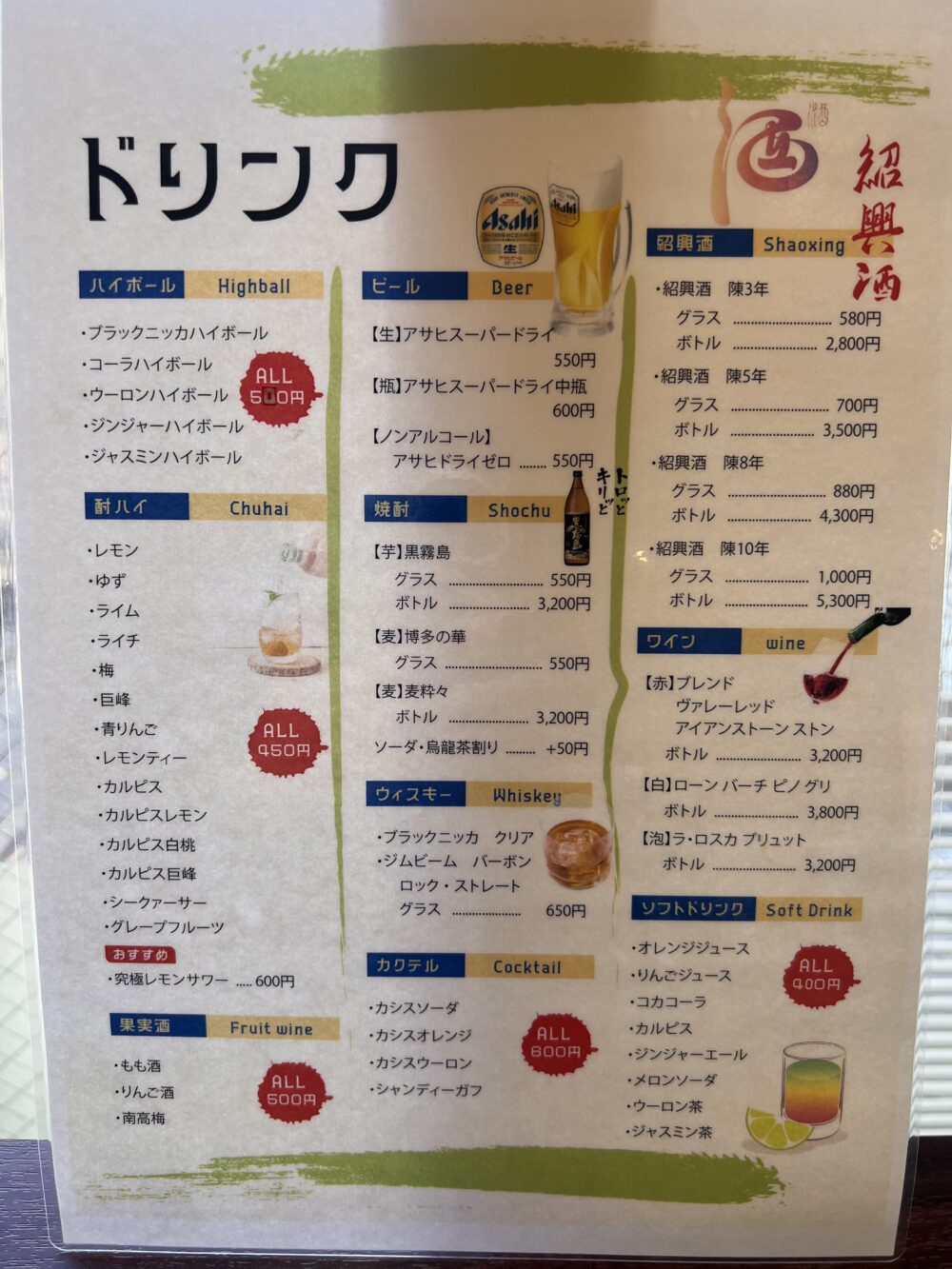 ドリンクメニューはこちら。