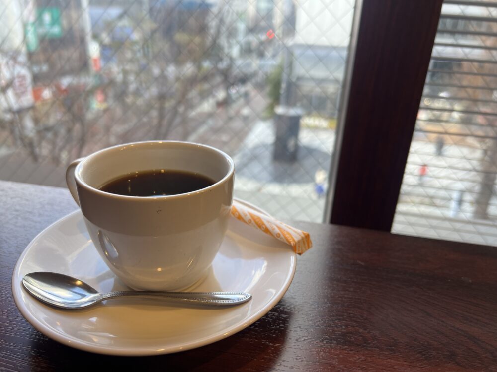 こちらのホットコーヒー、ブラックでも甘めな感じがしました。