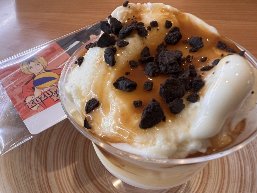 今回は「音駒高校のキャラメルアップルパフェ(税込430円)」を注文。