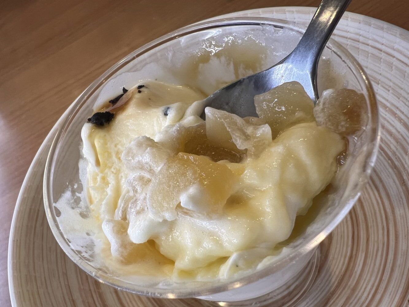 バニラアイスの下には、リンゴのコンポート、カスタードが。