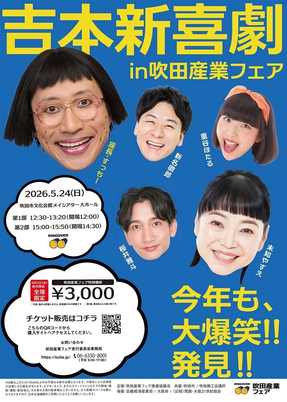 吹田オリジナルの吉本新喜劇が、吹田産業フェアで楽しめるみたいですよ~(^^♪