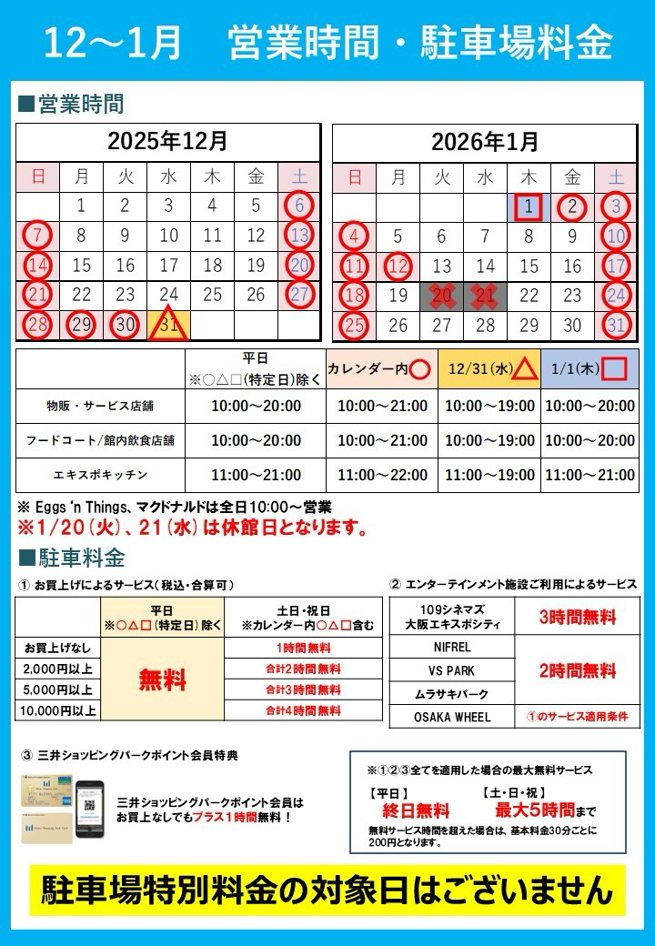 ※12月31日・1月1日は閉店時間が少し早い点に注意※