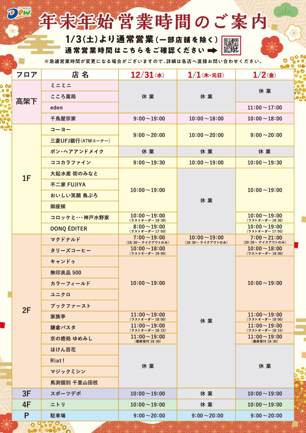 • 12月31日(水):10:00~18:00