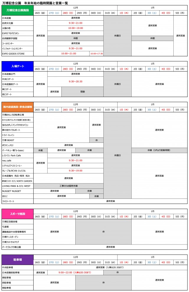 万博記念公園では12月27日(土)〜30日(火)に臨時開園がおこなわれます。