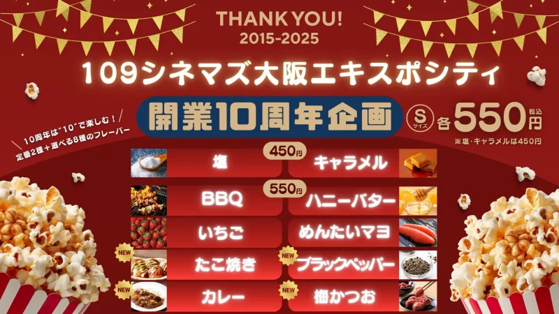 観客動員数TOP10を予想する「IMAX®10年の傑作選!観客動員数TOP10を予想せよ!」や、公式Xでリクエストの多かった作品を上映する「IMAX®レーザー/GTテクノロジーリクエスト上映」、さらに「タローマン」テレビシリーズと映画を上映する「タローマンべらぼう一挙上映」に加え、ポップコーンフレーバー10種類を期間限定で販売します。