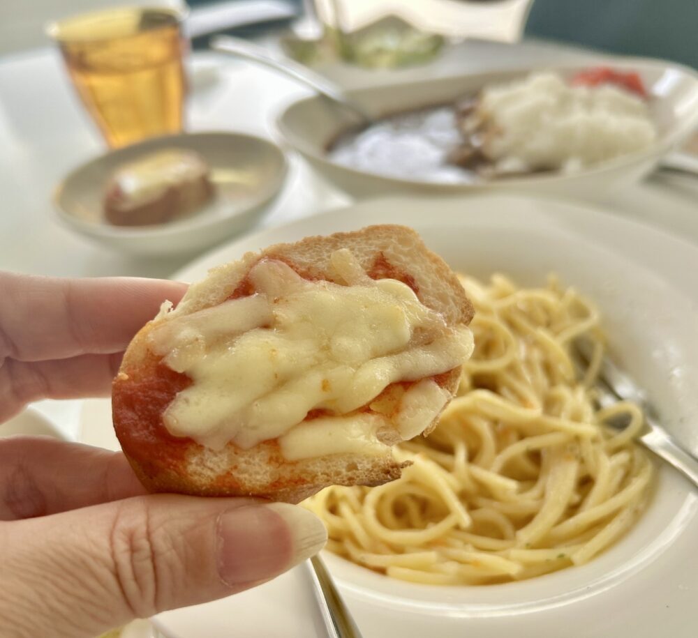 先ほど店頭で拝見した、お得なドリンクとサラダ&チーズバケットが付いたランチメニューや、