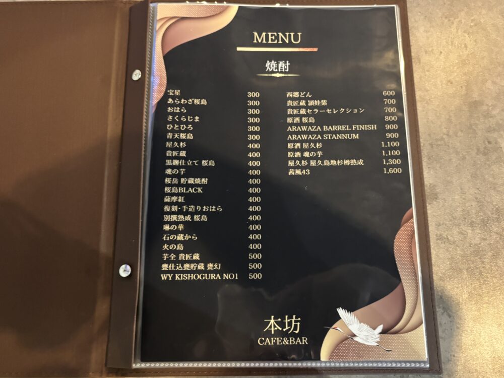 提供されるお酒は、すべて鹿児島・本坊酒造の銘柄のみ。だそうです。