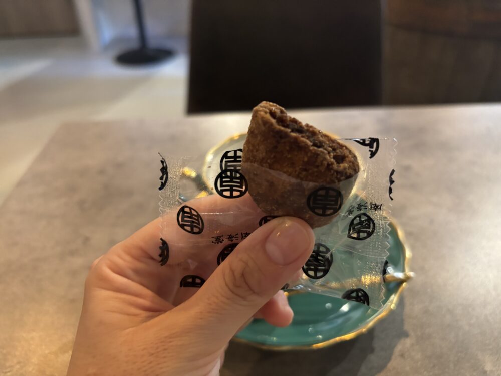 カップに添えてあるのは鹿児島銘菓のお菓子みたいで、“げたんは”というお菓子だそう。