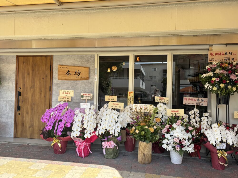 オープン当日のお昼過ぎ。店先にはあふれんばかりの祝花が……!!