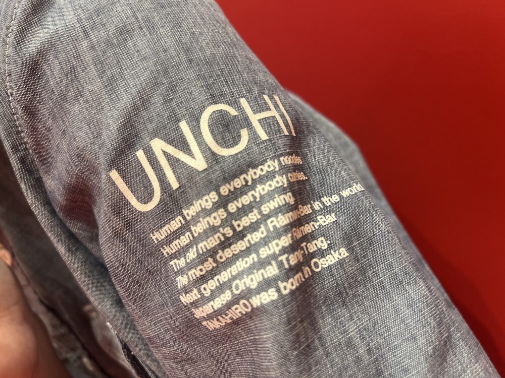 このUNCHIというネーミングは、「調子に乗っていたら良くない」と思い、自らを「う〇こ野郎」と戒めるという意味でつけたそうです。
