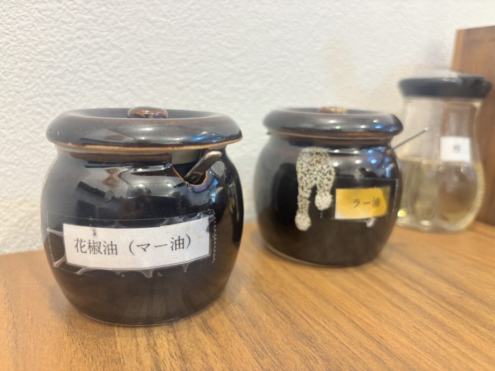 辛さがもう少し欲しい!という方には、テーブルに置かれている花椒油(マー油)やラー油で調整可能です⭐︎