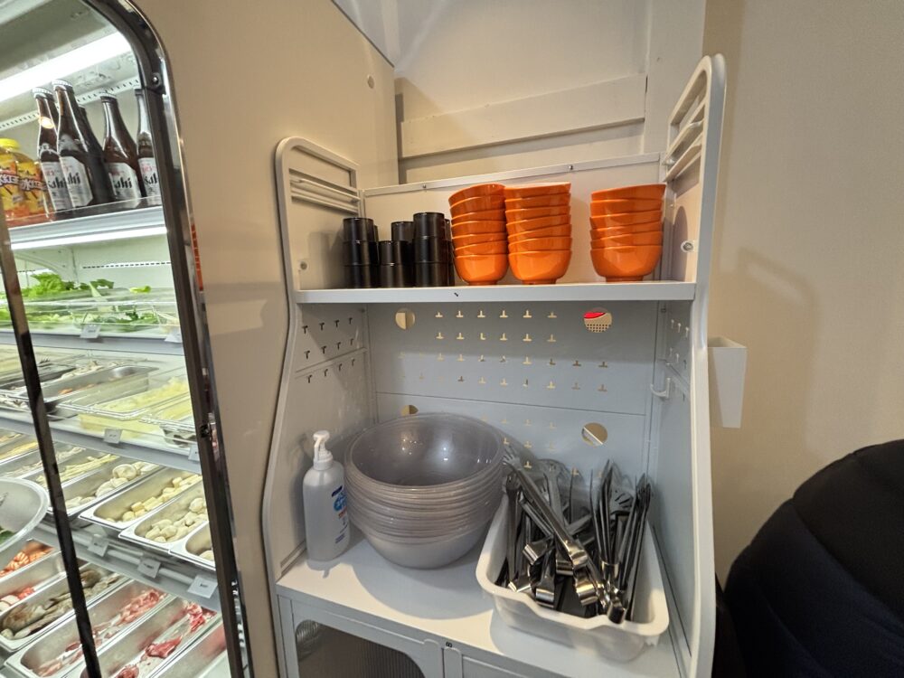 スタッフさんに案内していただき着席。荷物をおいて、ボールとトングを手に取り、