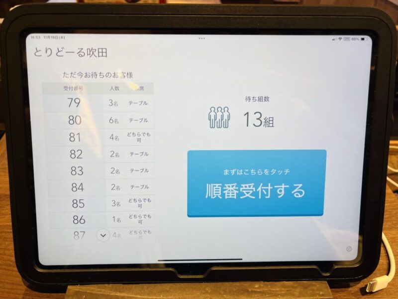 この焼場を通過して、タブレットで入店受付を済ませます。