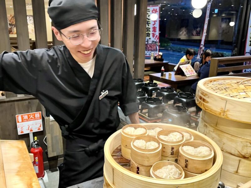 前回の記事で記載していた名物の『肉汁焼売』の蒸し器がドーン!と店のど真ん中に鎮座していて、すごい迫力です!!
