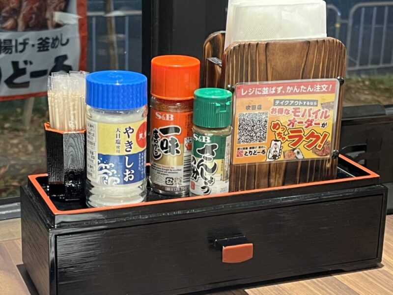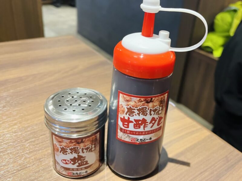 各テーブルには、から揚げ専用ダレや塩も完備!