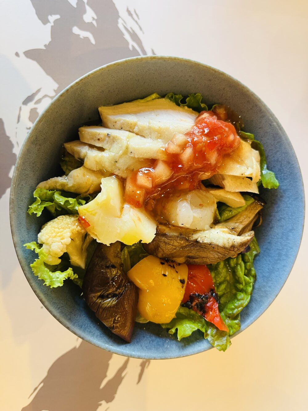 レタス、じゃがいも、パプリカ、きのこ、カリフラワーとお野菜たっぷりの丼です!