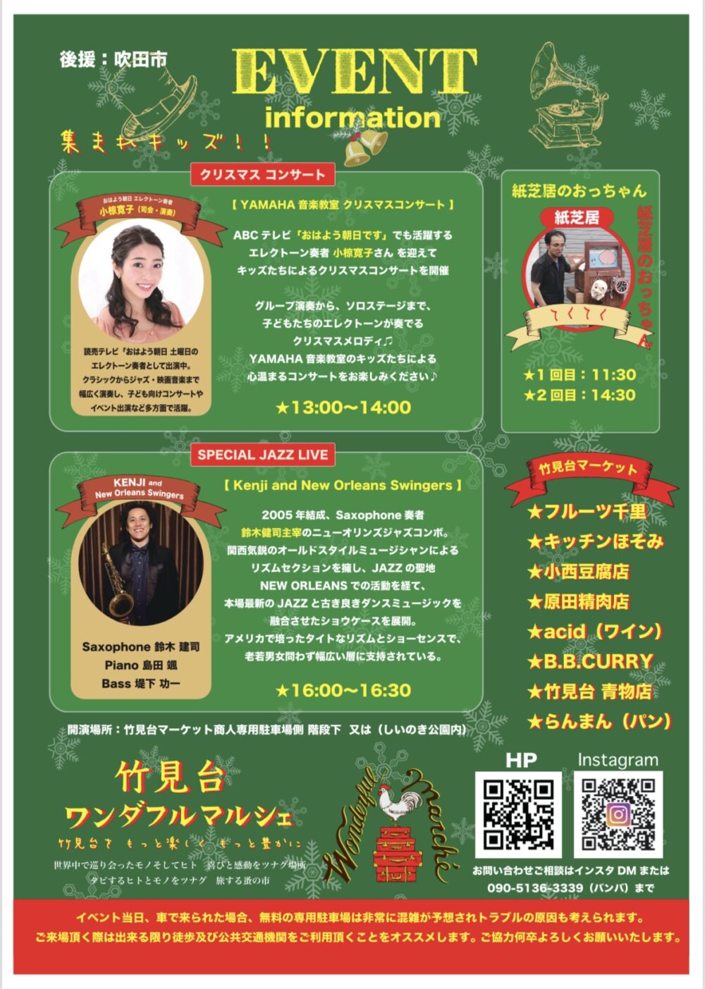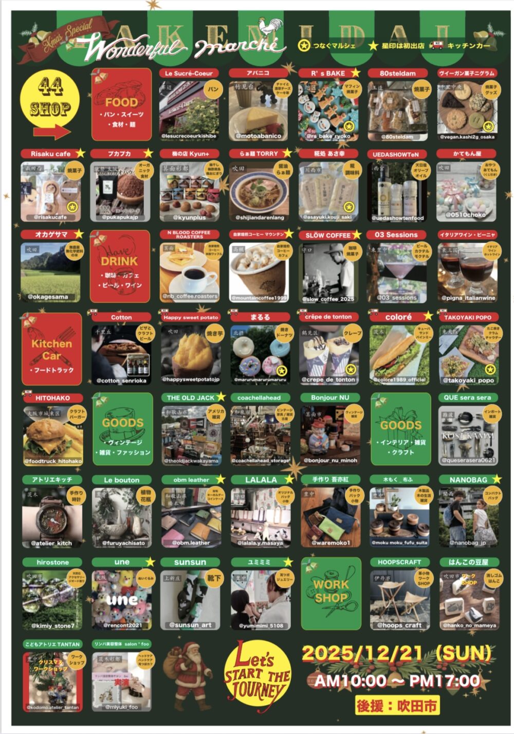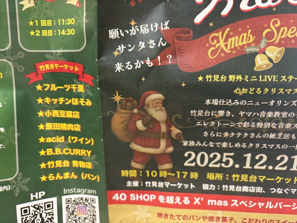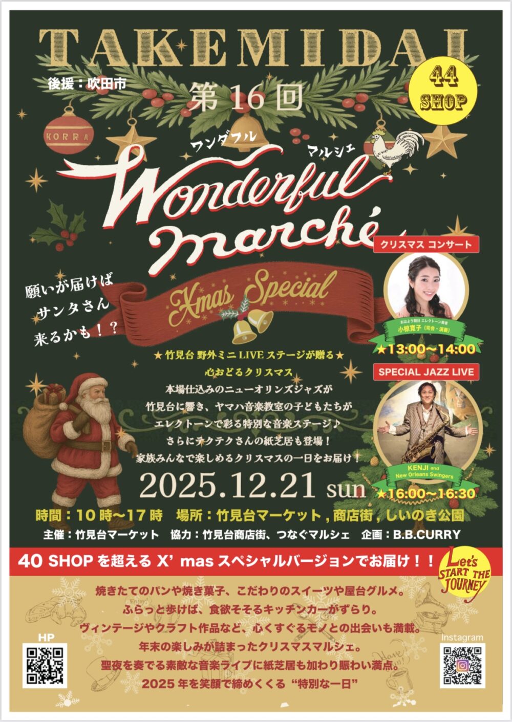 【12/21(日)開催!クリスマススペシャルマルシェ♪】ショップ大集結&豪華ステージ♪「第16回竹見台ワンダフルマルシェ」@竹見台マーケット
