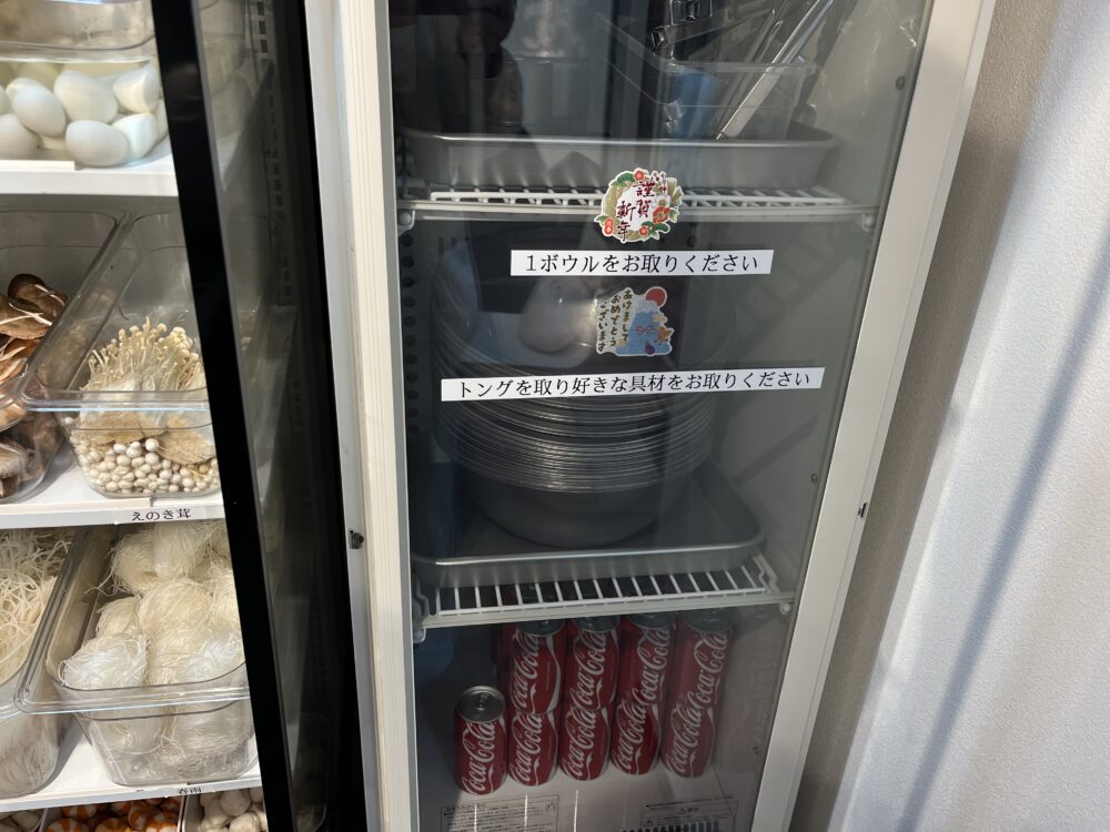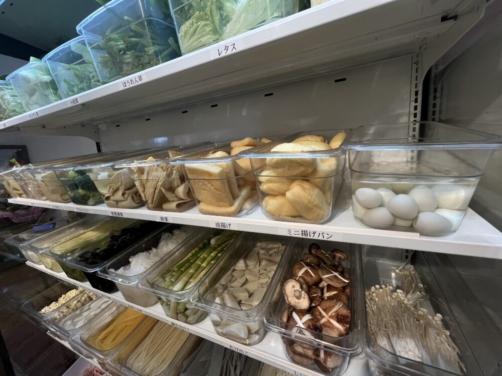 ②すぐ左横の冷蔵庫に並んでいる、野菜やお肉などの具材を好きなだけボウルに入れます!
