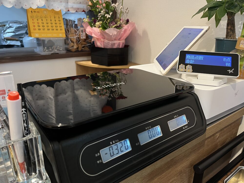 ③こちらのスケールにボウルをのせ、量り売りでお会計です。