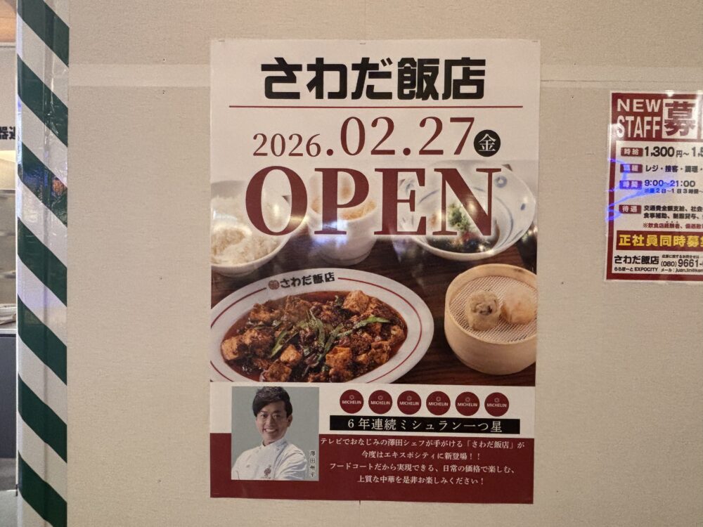 テレビでおなじみの澤田シェフが手がける『さわだ飯店』が今度はエキスポシティに新登場! フードコートだから実現できる、日常の価格で楽しむ上質な中華をぜひお楽しみください!